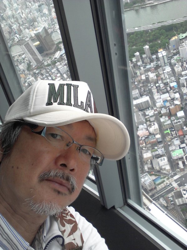 またしても自分撮り、相変わらず顔が堅い。スカイツリー