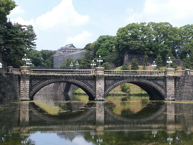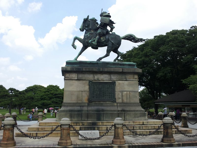 二重橋の前でお決まりの記念撮影、そして楠木 正成像を眺め
