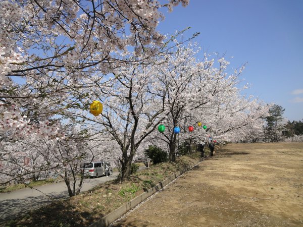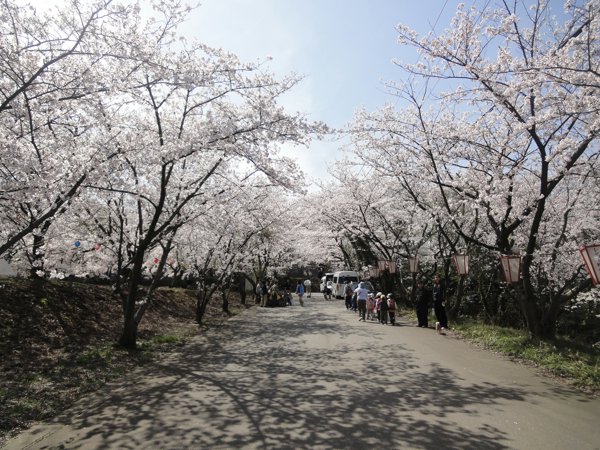 お花見です。デイケアの方や幼稚園児など春の陽に