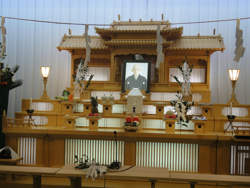 画像のように祭壇には榊が飾られ、もちろん焼香台はありません。