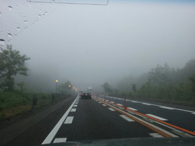 この写真は妙高高原での霧の中を走っているところです。