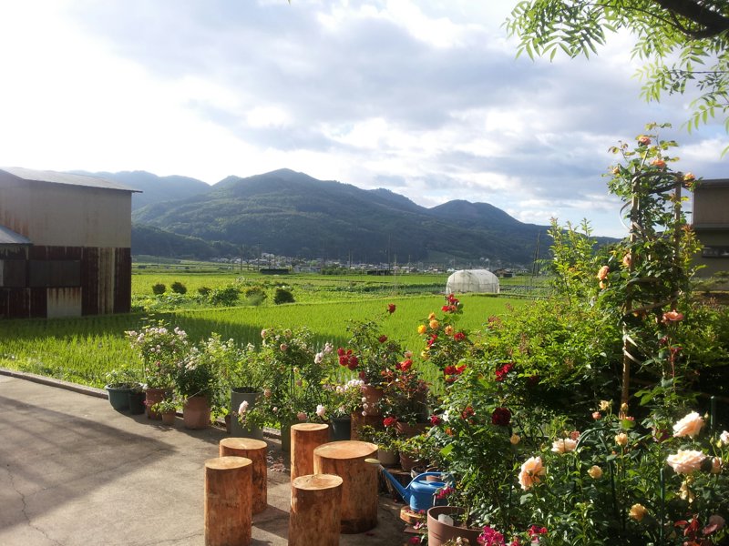 親戚の 庭から見える山々や家の周りです。叔母さんの具合