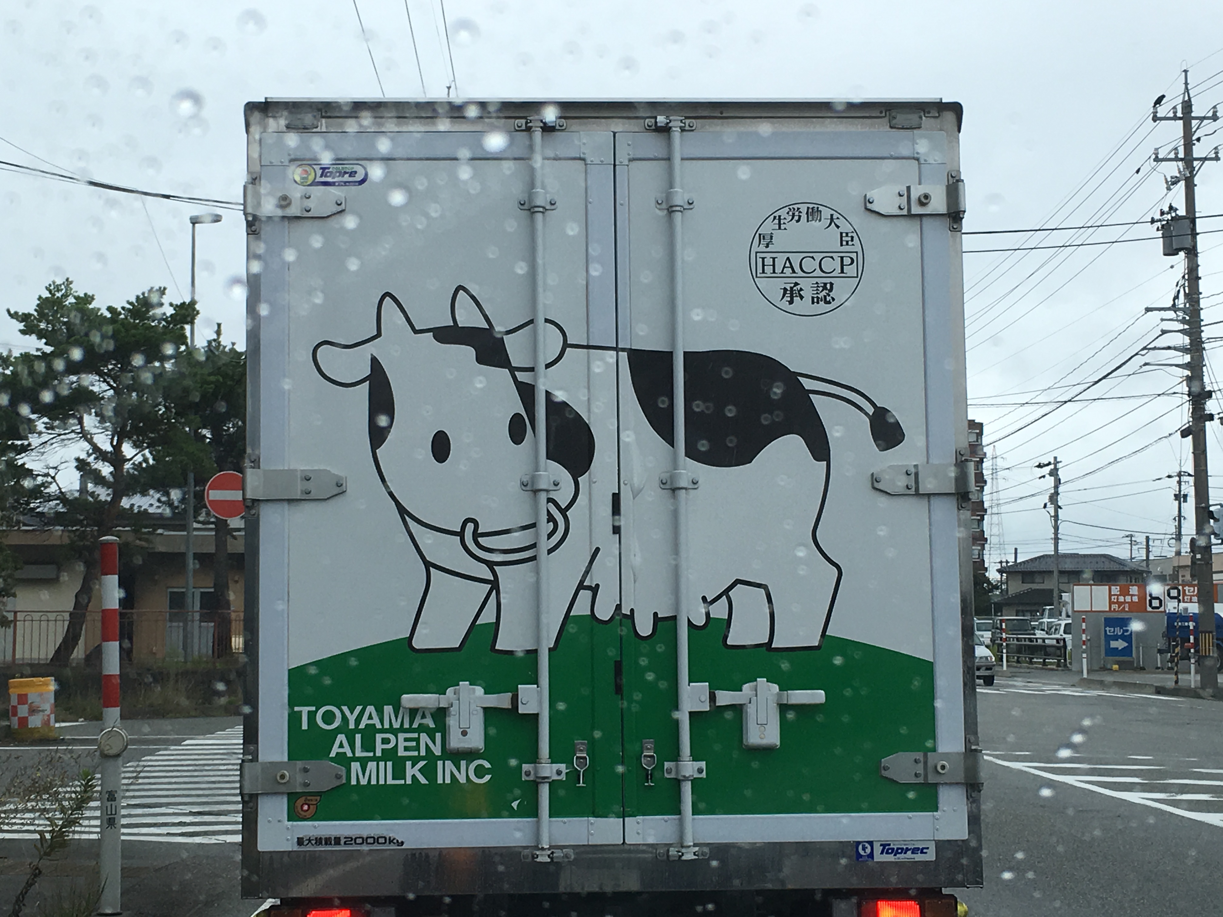 いると前にアルペン乳業のトラックで