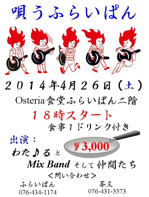 4月に入りました、唄うふらいぱん26日(日)です。