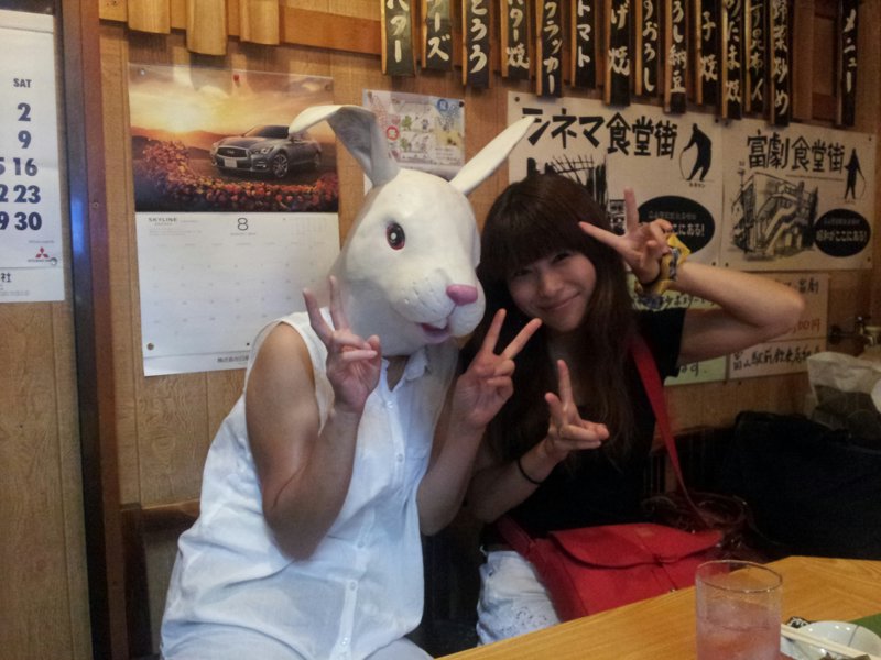この方も興味津々で写真を撮りましょうとかぶり物、そう