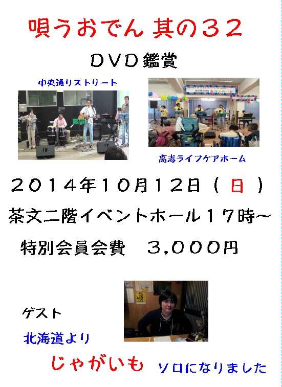 明日12日(日)は唄うおでん其の32でありますが、
