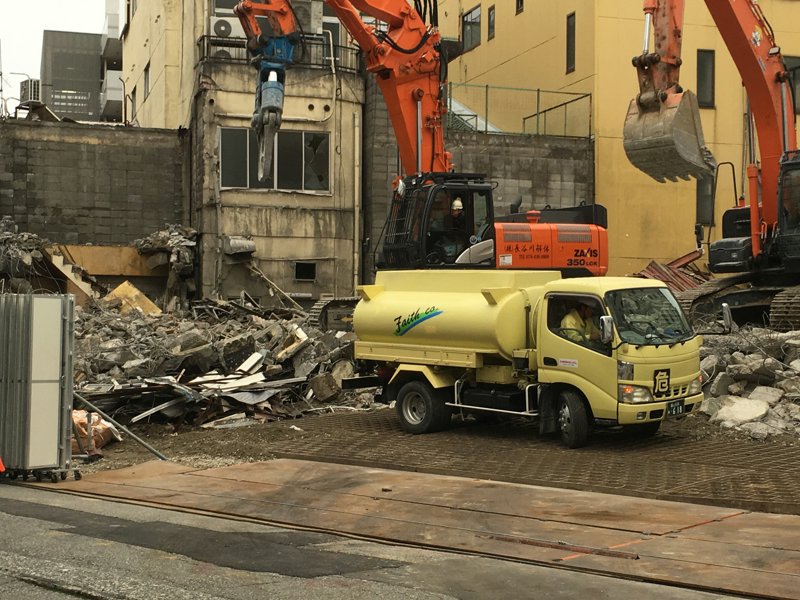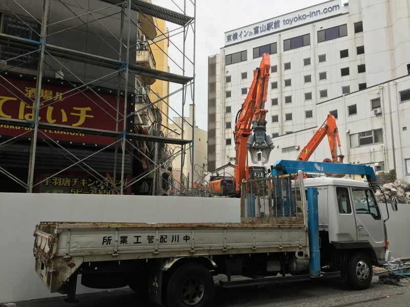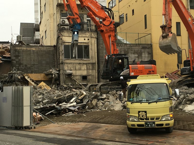 淡々と進む工事、つい数か月前まではここに賑わいが